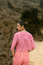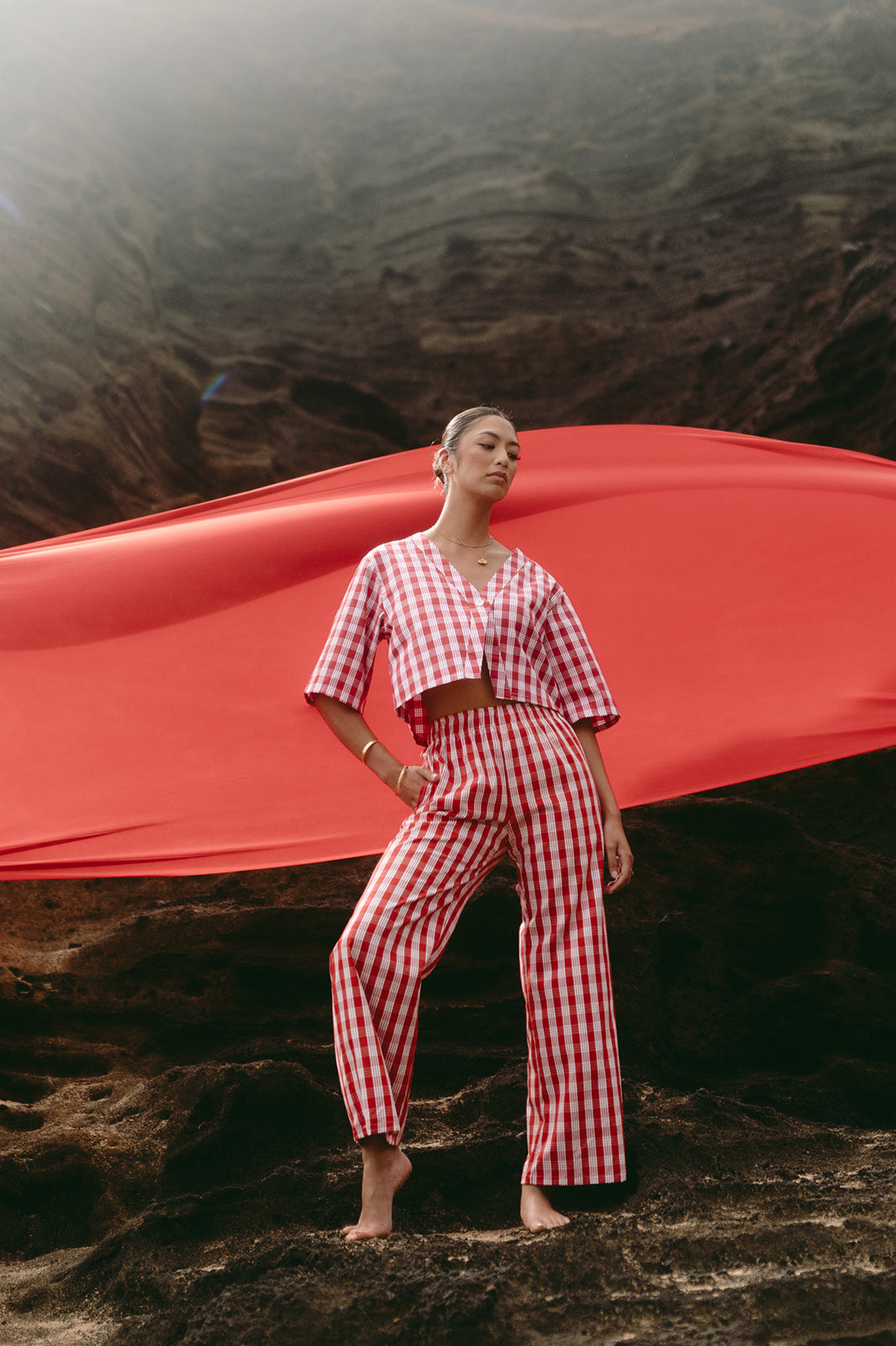 A half-sleeve cropped, one button blouse. For a little fun and a whole lot of fashion.